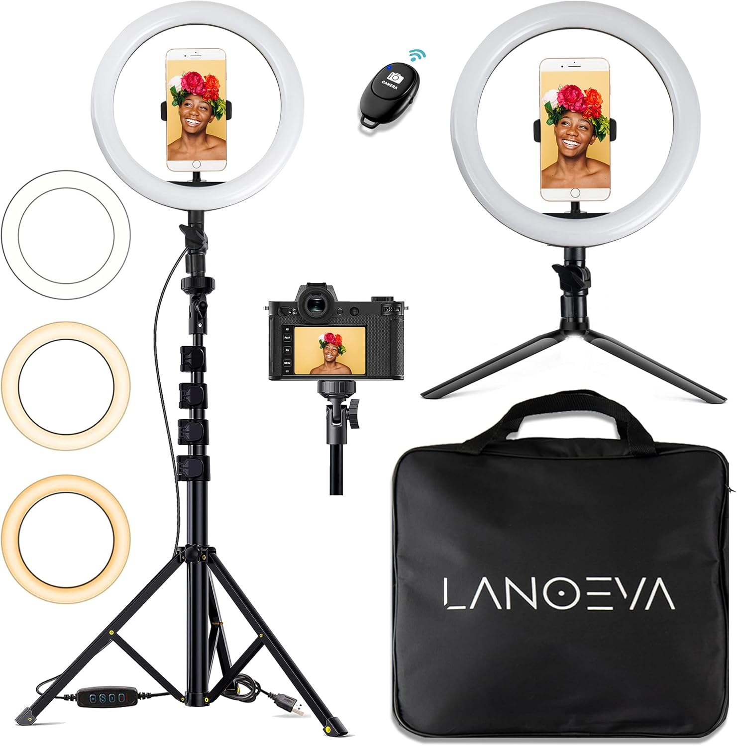 Professional reviews from industry experts LANOEVA 10-inch Selfie Ring Light with 2 Adjustable Tripod Stands & Cell Phone Flexible Holder - Circle LED Beauty Camera Halo for Live Stream/YouTube Video/TikTok/Makeup - Remote for iPhone/Android